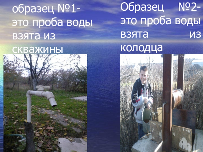 образец №1- это проба воды взята из скважиныОбразец №2- это проба воды взята из колодца