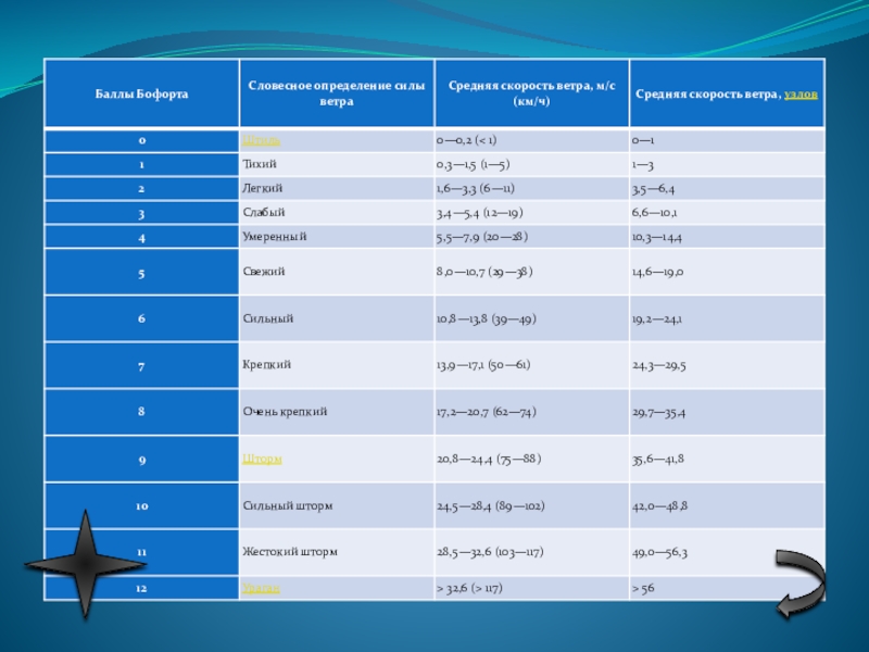 Сила ветра – измеряется по шкале баллов, которую предложил британский адмирал Бофорт.