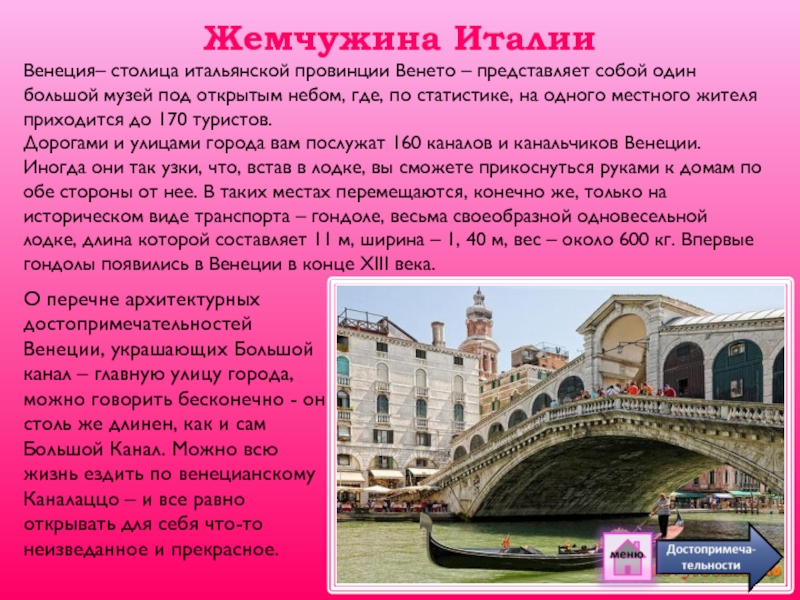 О перечне архитектурных достопримечательностей Венеции, украшающих Большой канал –