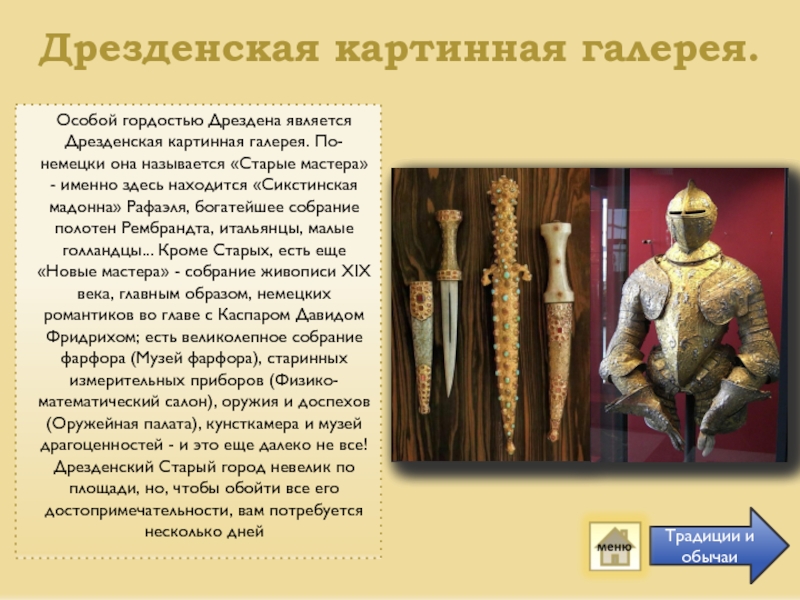 Особой гордостью Дрездена является Дрезденская картинная галерея. По-немецки