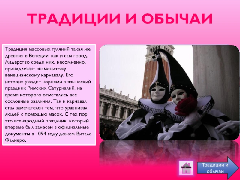 Слайд 42Традиция массовых гуляний такая же древняя в Венеции, как и сам