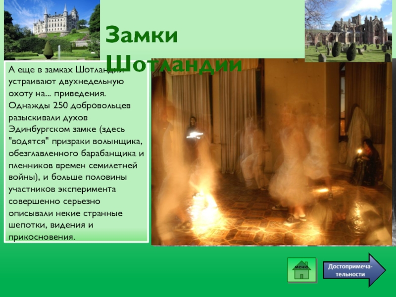 Слайд 50А еще в замках Шотландии устраивают двухнедельную охоту на... приведения. Однажды