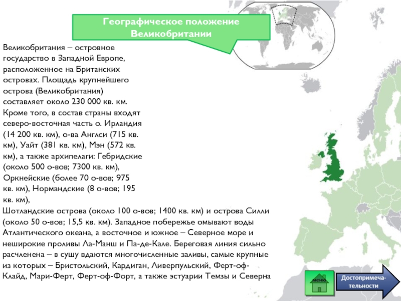Слайд 47Великобритания – островное государство в Западной Европе, расположенное на Британских островах.