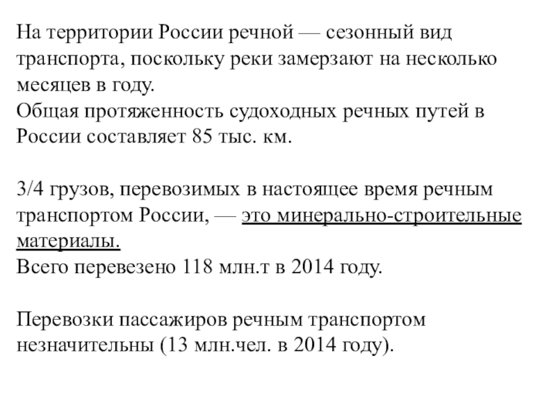 Слайд 21На территории России речной — сезонный вид транспорта, поскольку реки замерзают