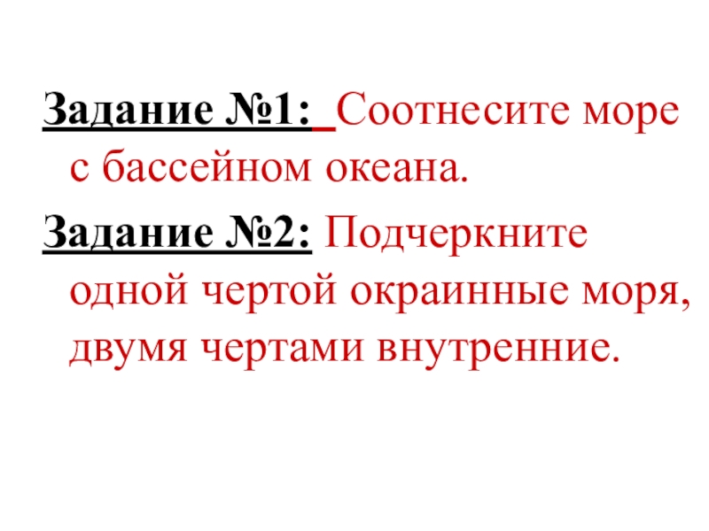 Задание №1: Соотнесите море с бассейном океана.