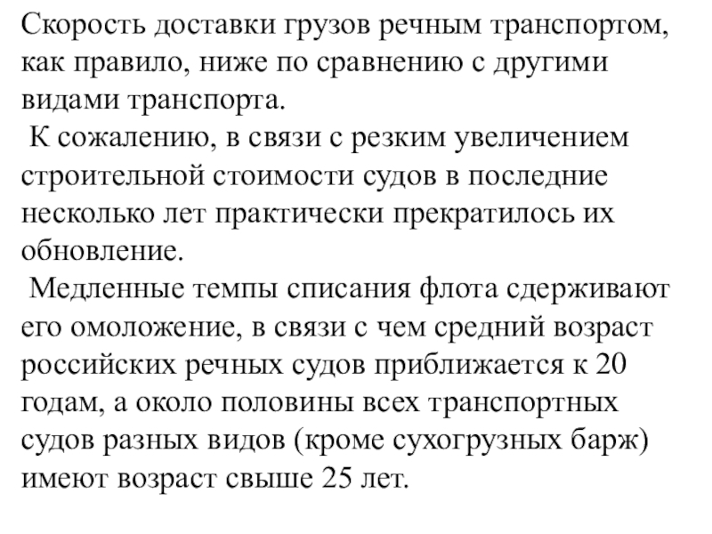 Скорость доставки грузов речным транспортом, как правило, ниже по сравнению с
