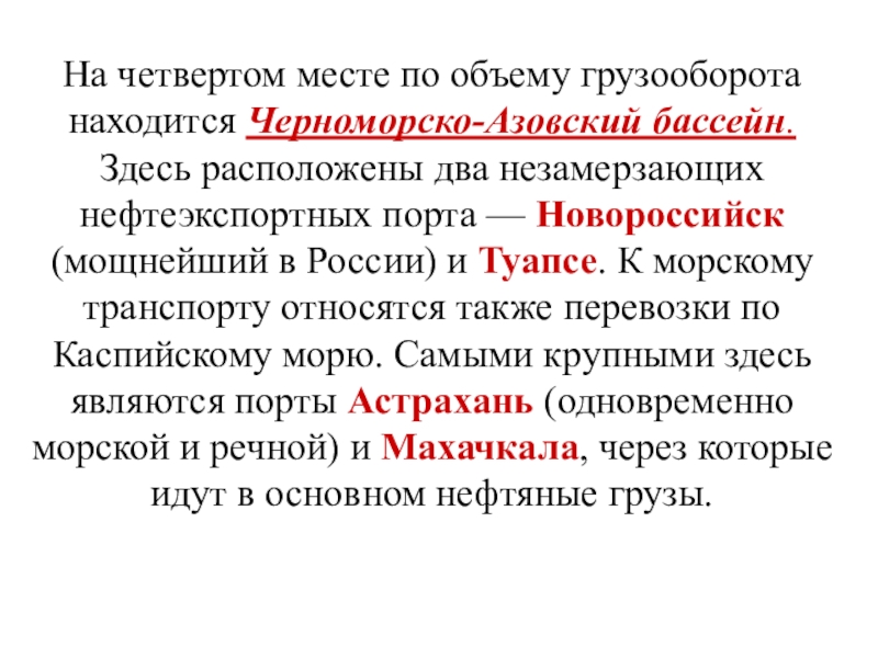 Слайд 15На четвертом месте по объему грузооборота находится Черноморско-Азовский бассейн. Здесь расположены