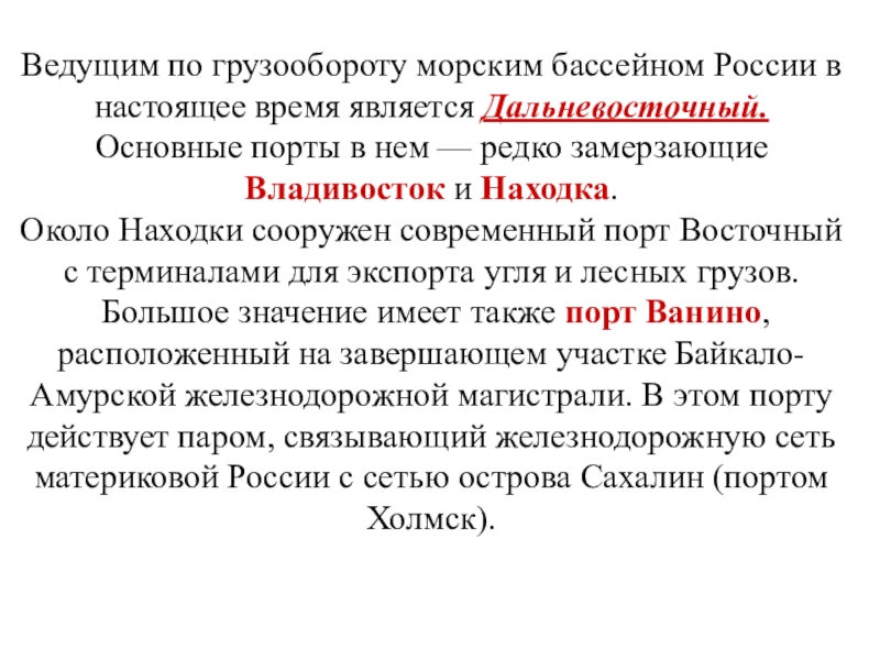 Слайд 8Ведущим по грузообороту морским бассейном России в настоящее время является Дальневосточный.
