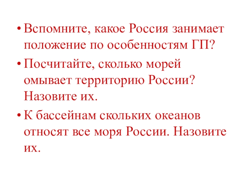 Вспомните, какое Россия занимает положение по особенностям ГП?