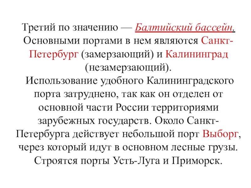Слайд 13Третий по значению — Балтийский бассейн. Основными портами в нем являются