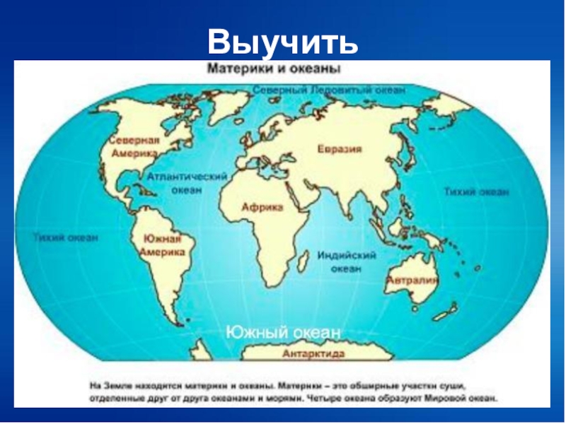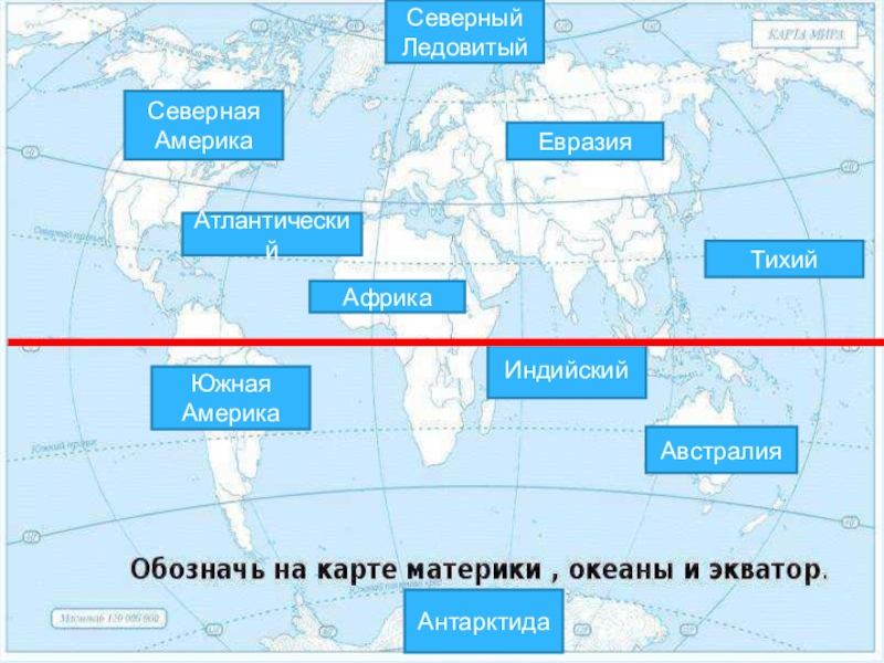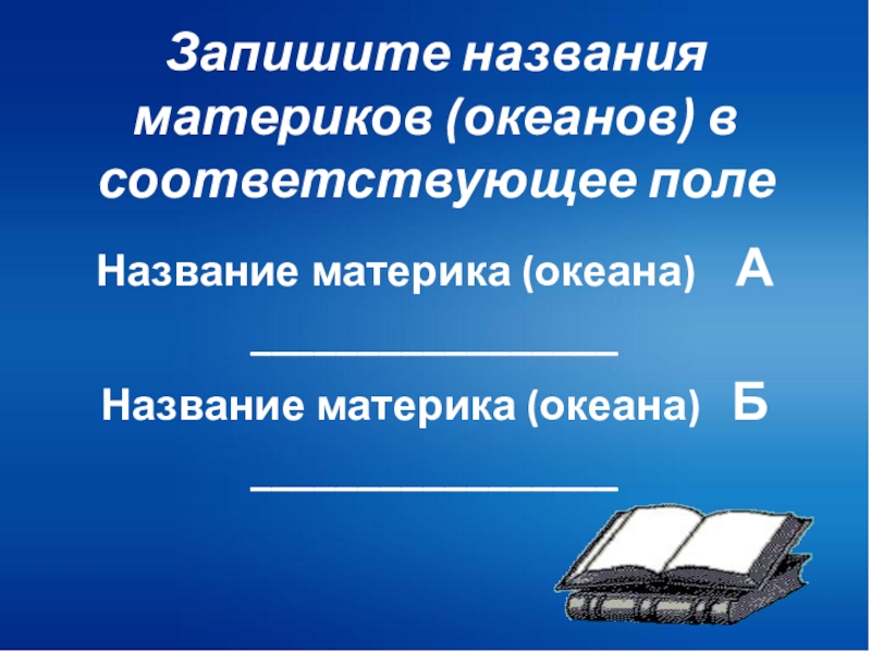 Слайд 3Запишите названия материков (океанов) в соответствующее поле