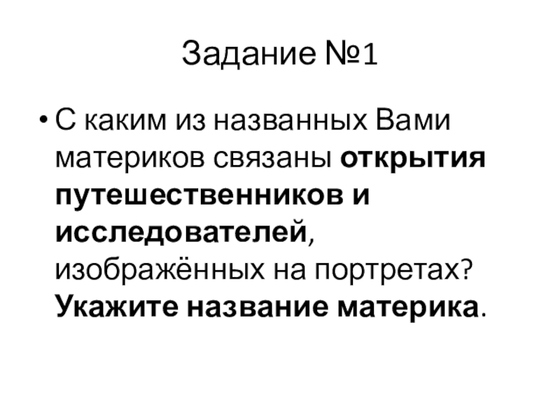 Задание №1С каким из названных Вами материков связаны открытия путешественников и исследователей, изображённых на портретах? Укажите название