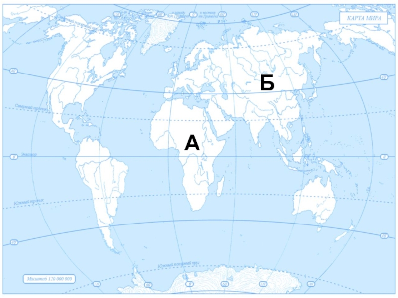 Запишите названия материков (океанов) в соответствующее полеНазвание материка (океана)  А_________________Название материка (океана)  Б_________________