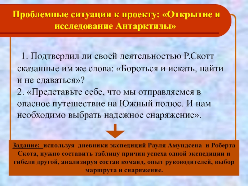Проблемные ситуации к проекту: «Открытие и исследование Антарктиды»
