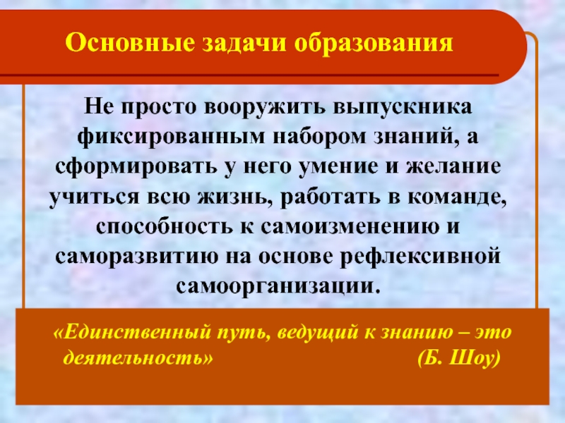 «Единственный путь, ведущий к знанию – это деятельность» (Б. Шоу)