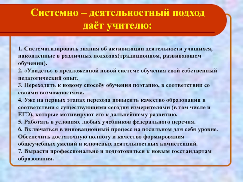 Позиция учителя: к классу не с ответом (готовые знания, умения, навыки), а с вопросом.