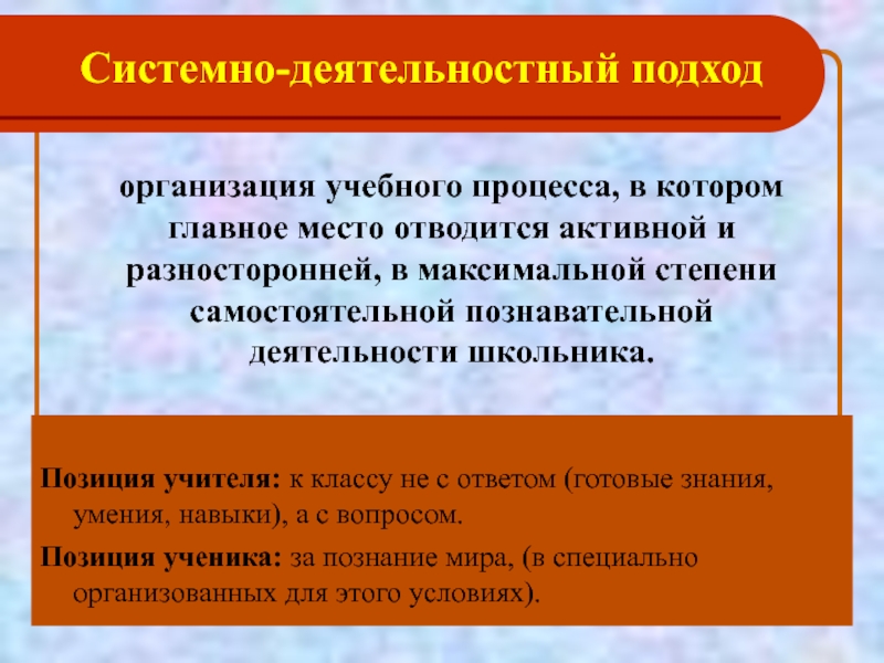Позиция ученика: за познание мира, (в специально организованных для этого условиях).