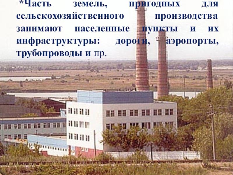 Слайд 5*Часть земель, пригодных для сельскохозяйственного производства занимают населенные пункты и их