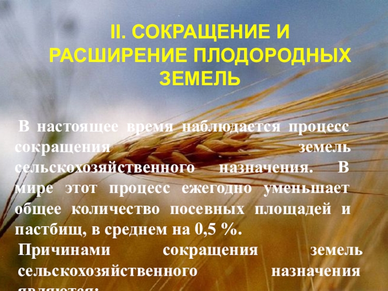 Слайд 9II. СОКРАЩЕНИЕ И РАСШИРЕНИЕ ПЛОДОРОДНЫХ ЗЕМЕЛЬ