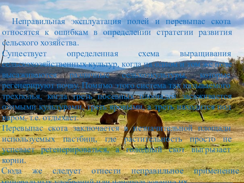 Неправильная эксплуатация полей и перевыпас скота относятся к ошибкам в