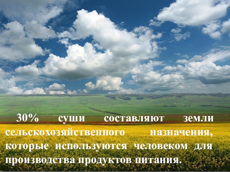 30% суши составляют земли сельскохозяйственного назначения, которые используются человеком для
