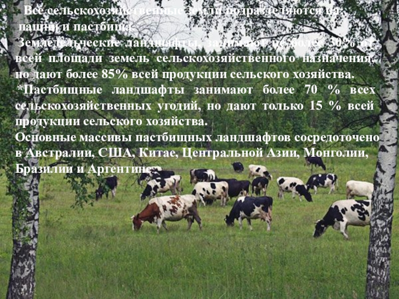 *Пастбищные ландшафты занимают более 70 % всех сельскохозяйственных угодий, но дают только 15 % всей продукции сельского хозяйства.