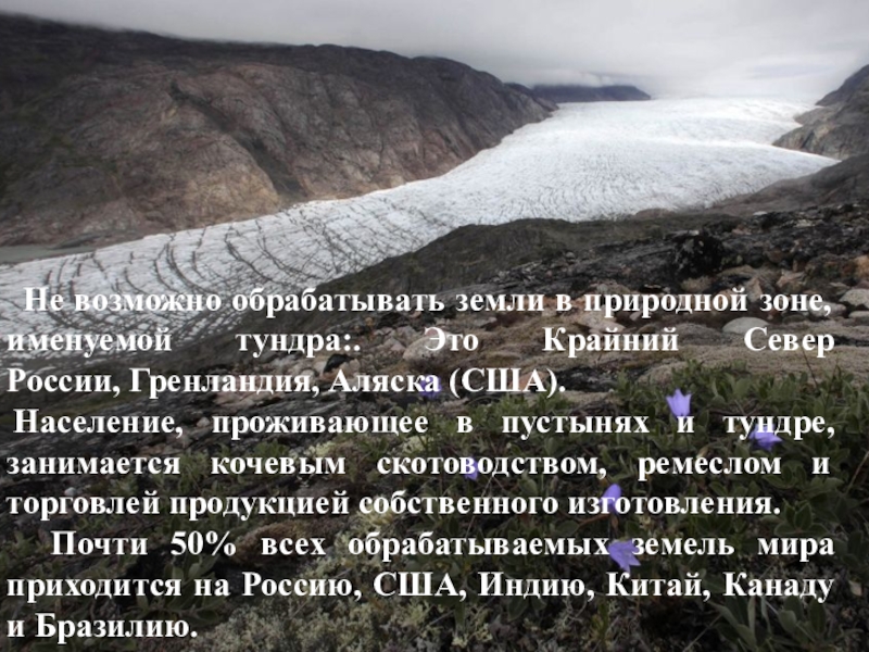 Слайд 7 Не возможно обрабатывать земли в природной зоне, именуемой тундра:. Это
