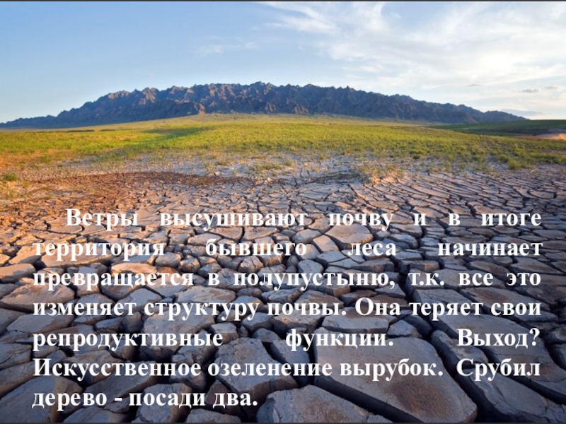 Слайд 11 Ветры высушивают почву и в итоге территория бывшего леса начинает