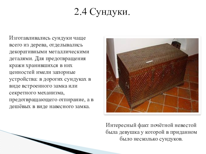 Интересный факт почётной невестой была девушка у которой в приданном было несколько сундуков.