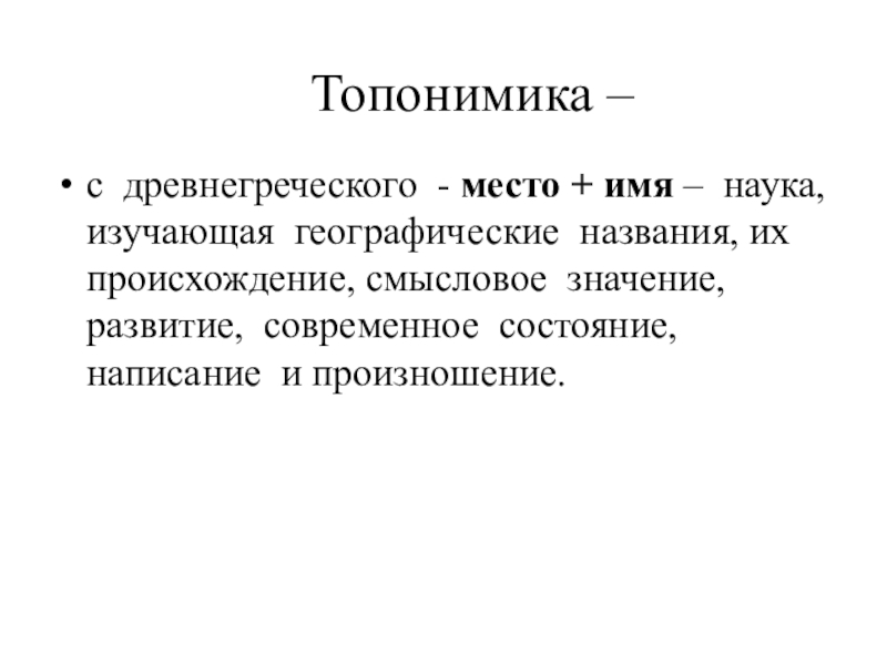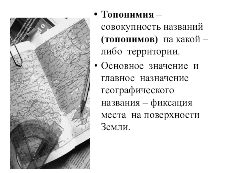 Слайд 7Топонимия – совокупность названий (топонимов) на какой – либо территории.