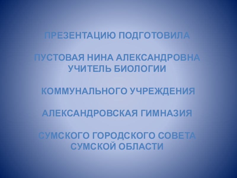 Презентацию подготовила   Пустовая Нина Александровна учитель биологии   Коммунального учреждения   Александровская гимназия