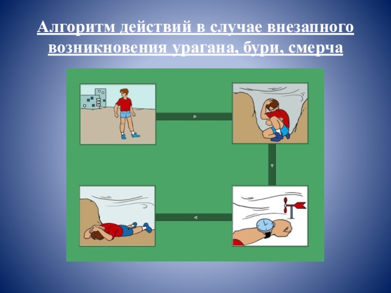 Алгоритм действий в случае внезапного возникновения урагана, бури, смерча