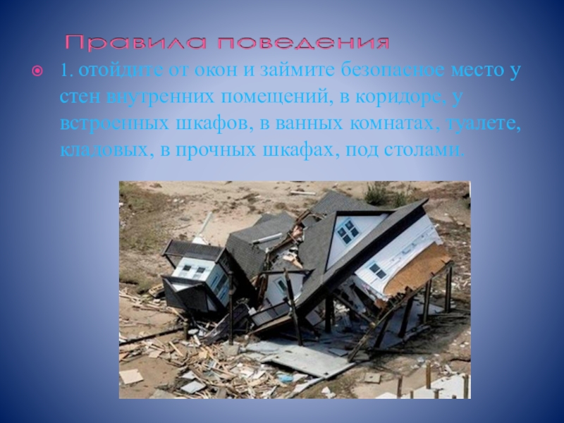 Слайд 161. отойдите от окон и займите безопасное место у стен внутренних