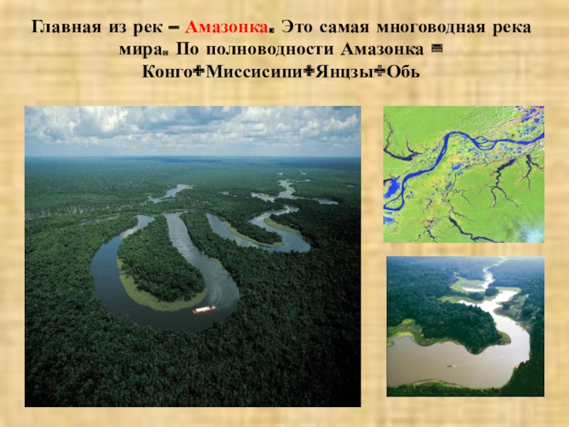 Слайд 7Главная из рек – Амазонка. Это самая многоводная река мира. По
