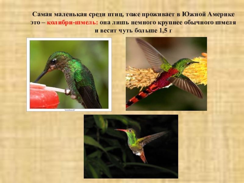 Слайд 27Самая маленькая среди птиц, тоже проживает в Южной Америке это –