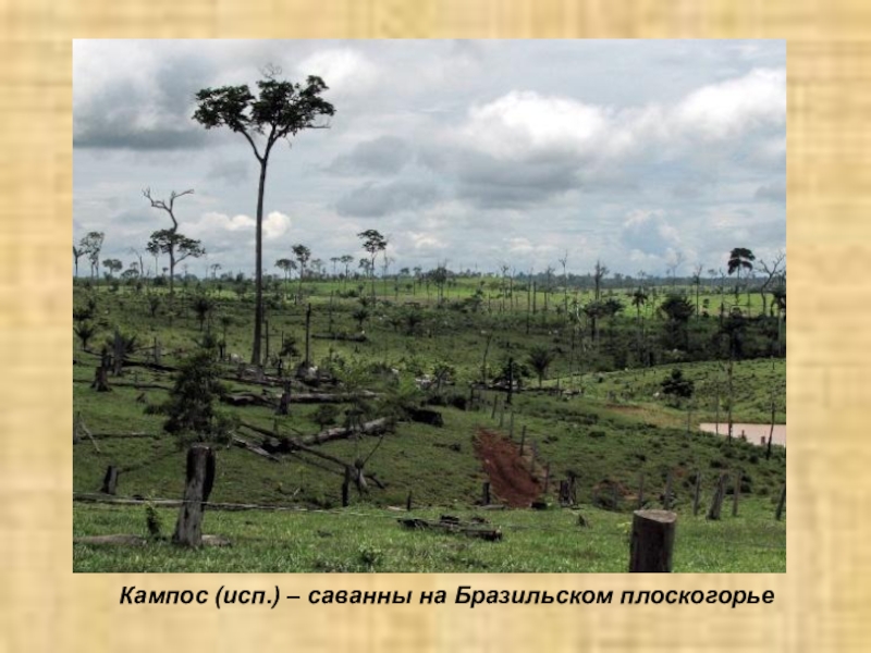 Слайд 11Кампос (исп.) – саванны на Бразильском плоскогорье