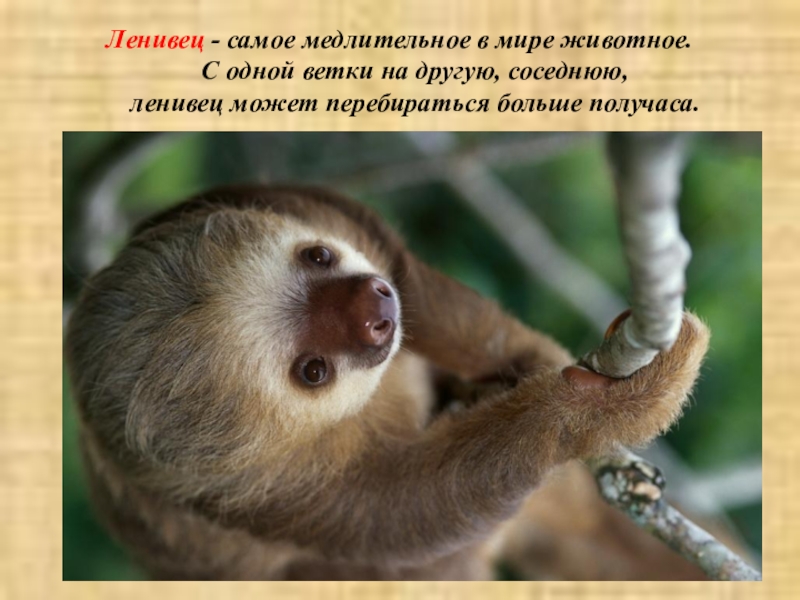 Слайд 31Ленивец - самое медлительное в мире животное.