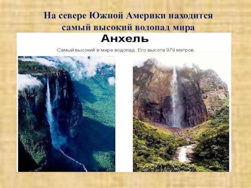 Слайд 8На севере Южной Америки находится самый высокий водопад мира