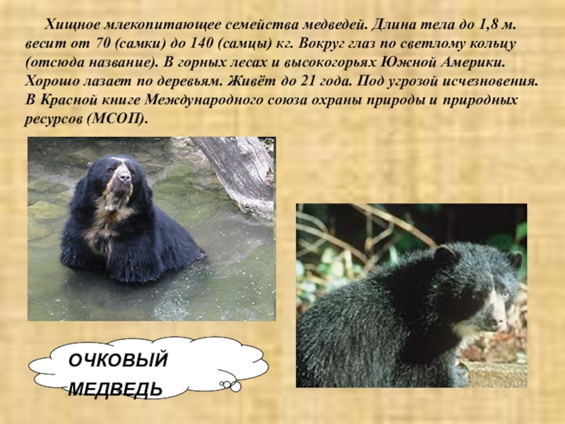 Слайд 46 Хищное млекопитающее семейства медведей. Длина тела до 1,8