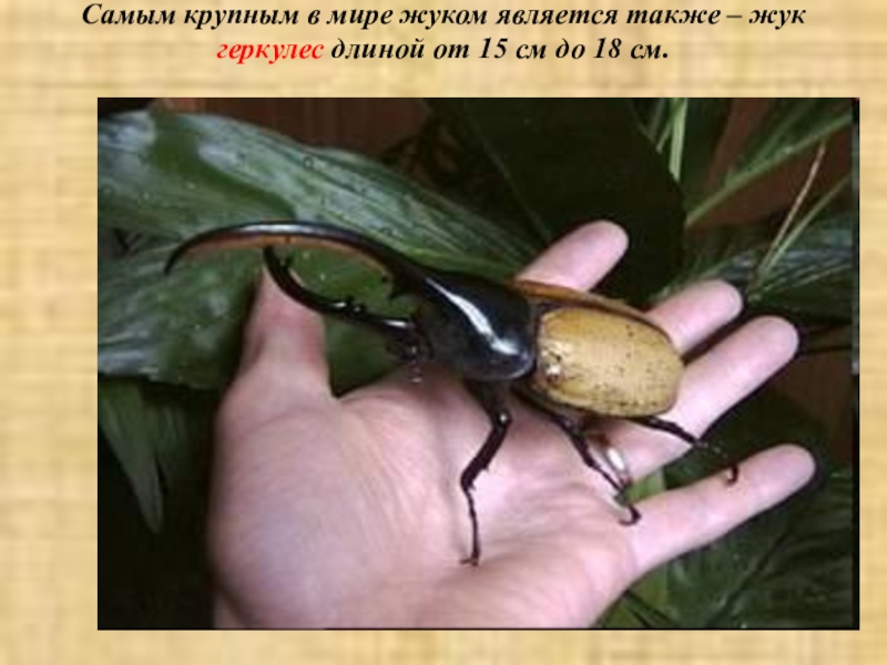 Слайд 35Один из самых больших на Земле жуков — редкое насекомое из
