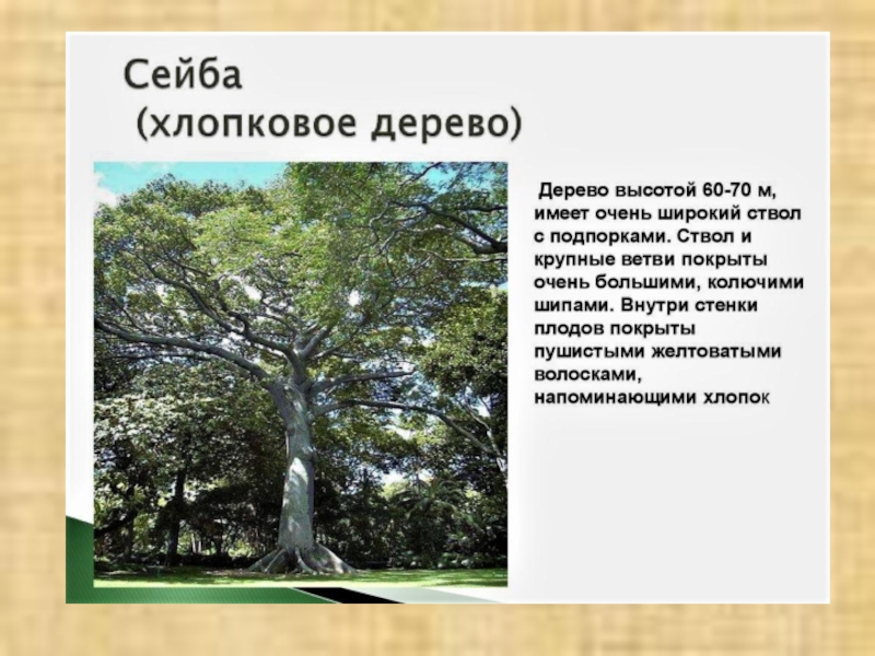 Слайд 51Сейба – дерево достигающее высоты 80 метров