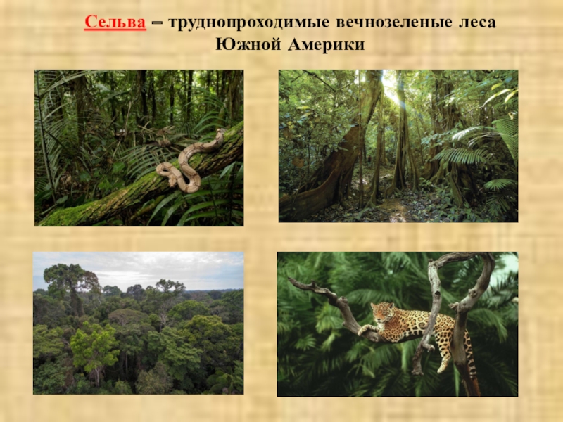 Слайд 9Сельва – труднопроходимые вечнозеленые леса Южной Америки