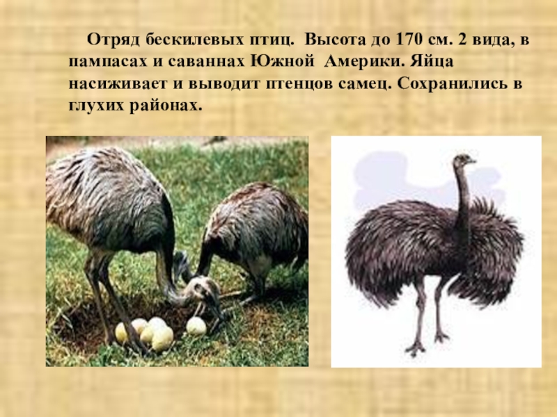 Отряд бескилевых птиц. Высота до 170 см. 2 вида,