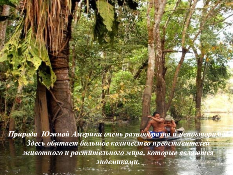 Разнообразие природно-климатических условий Южной Америки, ее удаленность от других материков, определило разнообразие природных зон, богатых растительным и животным миром и множества эндемичных видов.