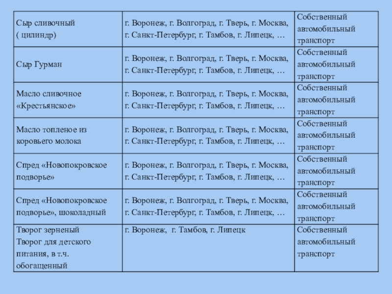 из молока. В молочной отрасли многие используют сухие молочные смеси, а что еще хуже – производят замену молочного жира на растительный. Тем ценнее для сторонников здорового питания, что сыр и масло маслосырзавода «Новопокровский» производят исключительно из натурального молока. Из-за нехватки местного сырья, предприятие заключило контракты на поставку сырья с поставщиками из других областей: Липецкой и Воронежской, Нижегородской и Рязанской.