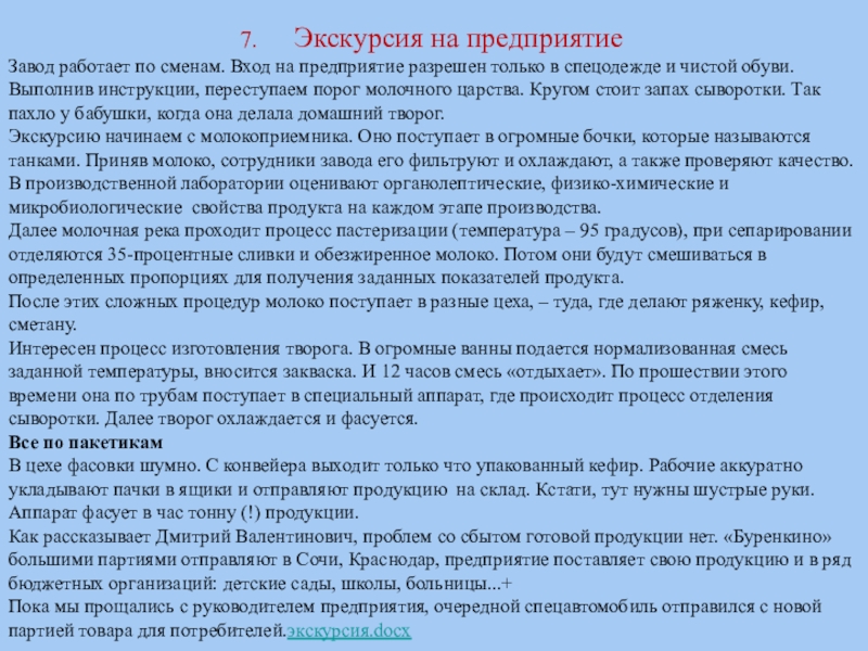 3. Третья группа организует экскурсию по маслосырзаводу, встречается с интересными людьми.