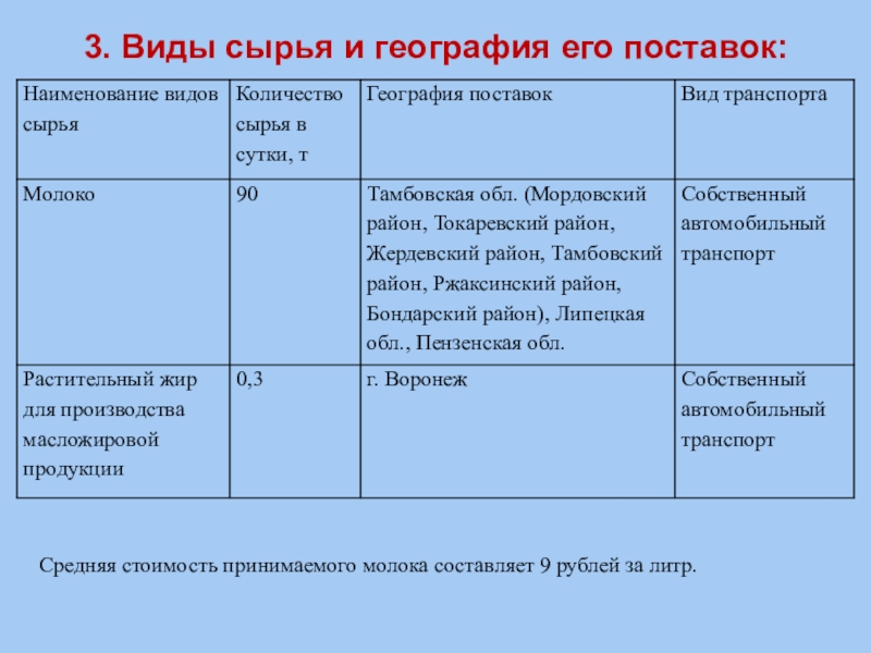 на ЗАО МСЗ «Новопокровский». Если в 1990 г. основными поставщиками сырья были население и хозяйства Мордовского и Токаревского районов, то в 2015 г. география поставок сырья резко расширилась. В настоящее время сырье на ЗАО МСЗ «Новопокровский» поступает из Тамбовской (Мордовский район, Токаревский район, Жердевский район, Тамбовский район, Ржаксинский район, Бондарский район), Липецкой и Пензенской областей, а также из г. Воронеж.