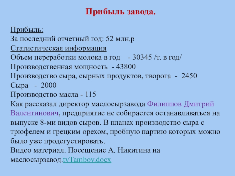 Видео материал. Посещение А. Никитина на маслосырзавод.tvTambov.docx