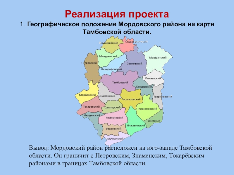 1. Географическое положение Мордовского района на карте Тамбовской области.