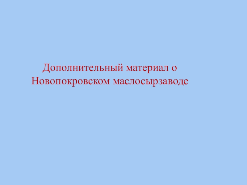 Слайд 19Дополнительный материал о Новопокровском маслосырзаводе